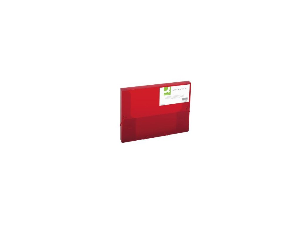 Transparentný plastový box s tromi chlopňami vyrobený z polypropylénu, uzatvárateľný gumičkou. Kapacita 250 listov, šírka chrbta 25 mm. Farba červená.Dodatočné parametre