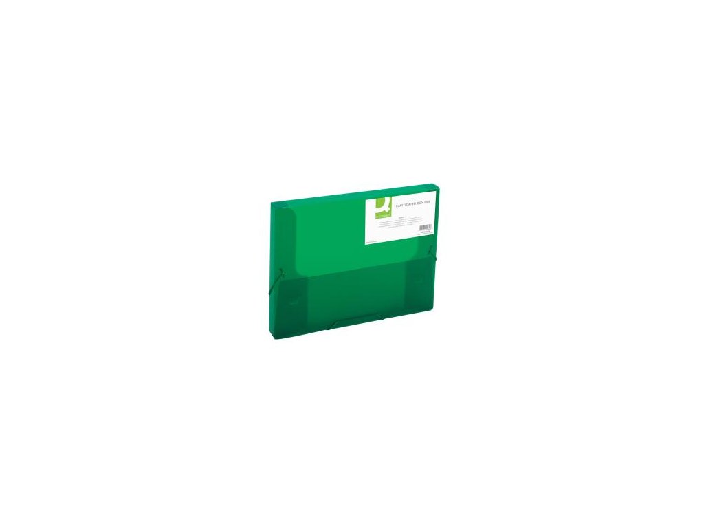 Transparentný plastový box s tromi chlopňami vyrobený z polypropylénu, uzatvárateľný gumičkou. Kapacita 250 listov, šírka chrbta 25 mm. Farba zelená.Dodatočné parametre