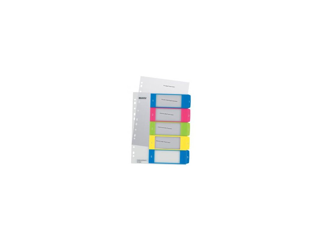 Opakovane použiteľný a extra odolný plastový číselný rozraďovač 1 - 5 v žiarivých farebných kombináciách s univerzálnou perforáciou. Materiál odolný polypropylén hrúbky 0,3 mm. Formát A4 maxi. Možnosť potlače na upravenie podľa vlastných potrieb, predloha stiahnuteľná zdarma na www.esselte.com/ easyprint.Dodatočné parametre