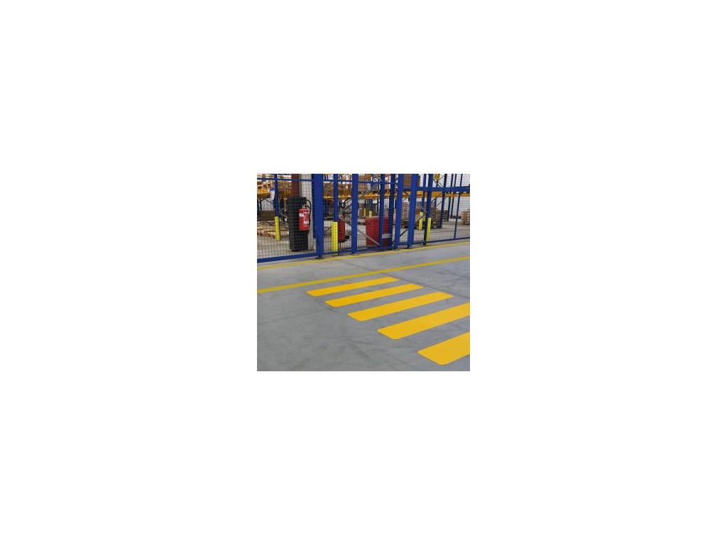 Samolepiace podlahové značenie ako vnútorný chodník pre chodcov.• Samolepiace podlahové značenie ako vnútorný chodník pre chodcov