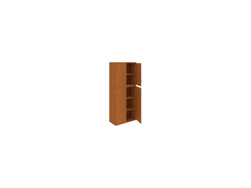 Kombinovaná skriňa - dvere/nika. Kancelárske skrine STRONG majú robustnú konštrukciu a vyššiu nosnosť políc ako bežné kancelárske skrine.V ponuke sú skriňové moduly s výškou 185 cm, 111 cm alebo 74 cm a šírky 80 cm alebo 40 cm.Hĺbka všetkých modelov skriňového radu STRONG je 40 cm.Chrbát, vyrobený z 8 mm hrubých dosák, je obojstranne pohľadový, takže skrine môžete použiť ako priestorový deliaci prvok. Hrúbka samotných políc je 25 mm, čo znamená nosnosť 80 kg na 1 policu.Korpusy, dvierka a police skríň sú olepené odolnou 2mm ABS hranou, ktorá garantuje dostatočnú ochranu proti poškodeniu.