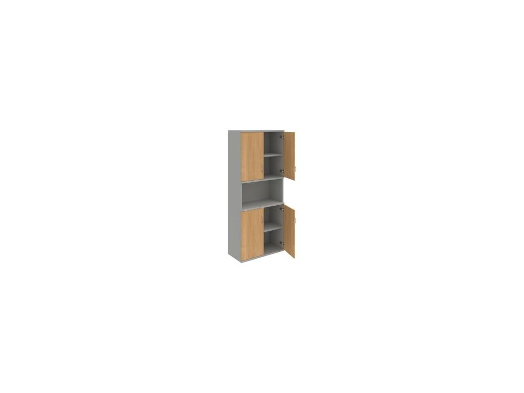 Kombinovaná skriňa - dvere/nika. Kancelárske skrine STRONG majú robustnú konštrukciu a vyššiu nosnosť políc ako bežné kancelárske skrine.V ponuke sú skriňové moduly s výškou 185 cm, 111 cm alebo 74 cm a šírky 80 cm alebo 40 cm.Hĺbka všetkých modelov skriňového radu STRONG je 40 cm.Chrbát, vyrobený z 8 mm hrubých dosák, je obojstranne pohľadový, takže skrine môžete použiť ako priestorový deliaci prvok. Hrúbka samotných políc je 25 mm, čo znamená nosnosť 80 kg na 1 policu.Korpusy, dvierka a police skríň sú olepené odolnou 2mm ABS hranou, ktorá garantuje dostatočnú ochranu proti poškodeniu.