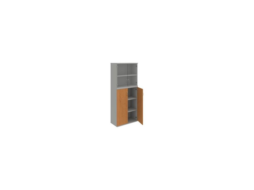 Kombinovaná skriňa - dvere/nika. Kancelárske skrine STRONG majú robustnú konštrukciu a vyššiu nosnosť políc ako bežné kancelárske skrine.V ponuke sú skriňové moduly s výškou 185 cm, 111 cm alebo 74 cm a šírky 80 cm alebo 40 cm. Hĺbka všetkých modelov skriňového radu STRONG je 40 cm.Chrbát, vyrobený z 8 mm hrubých dosák, je obojstranne pohľadový, takže skrine môžete použiť ako priestorový deliaci prvok. Hrúbka samotných políc je 25 mm, čo znamená nosnosť 80 kg na 1 policu.Korpusy, dvierka a police skríň sú olepené odolnou 2mm ABS hranou, ktorá garantuje dostatočnú ochranu proti poškodeniu.