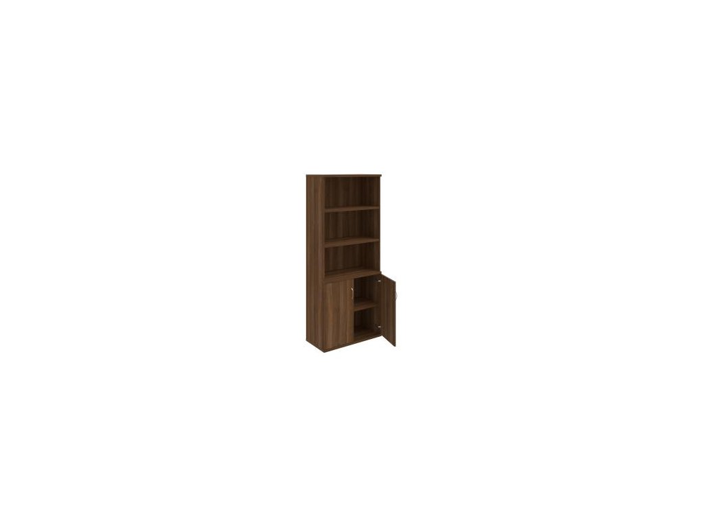 Kombinovaná skriňa - dvere/nika. Kancelárske skrine STRONG majú robustnú konštrukciu a vyššiu nosnosť políc ako bežné kancelárske skrine.V ponuke sú skriňové moduly s výškou 185 cm, 111 cm alebo 74 cm a šírky 80 cm alebo 40 cm.Hĺbka všetkých modelov skriňového radu STRONG je 40 cm.Chrbát, vyrobený z 8 mm hrubých dosák, je obojstranne pohľadový, takže skrine môžete použiť ako priestorový deliaci prvok. Hrúbka samotných políc je 25 mm, čo znamená nosnosť 80 kg na 1 policu.Korpusy, dvierka a police skríň sú olepené odolnou 2mm ABS hranou, ktorá garantuje dostatočnú ochranu proti poškodeniu.