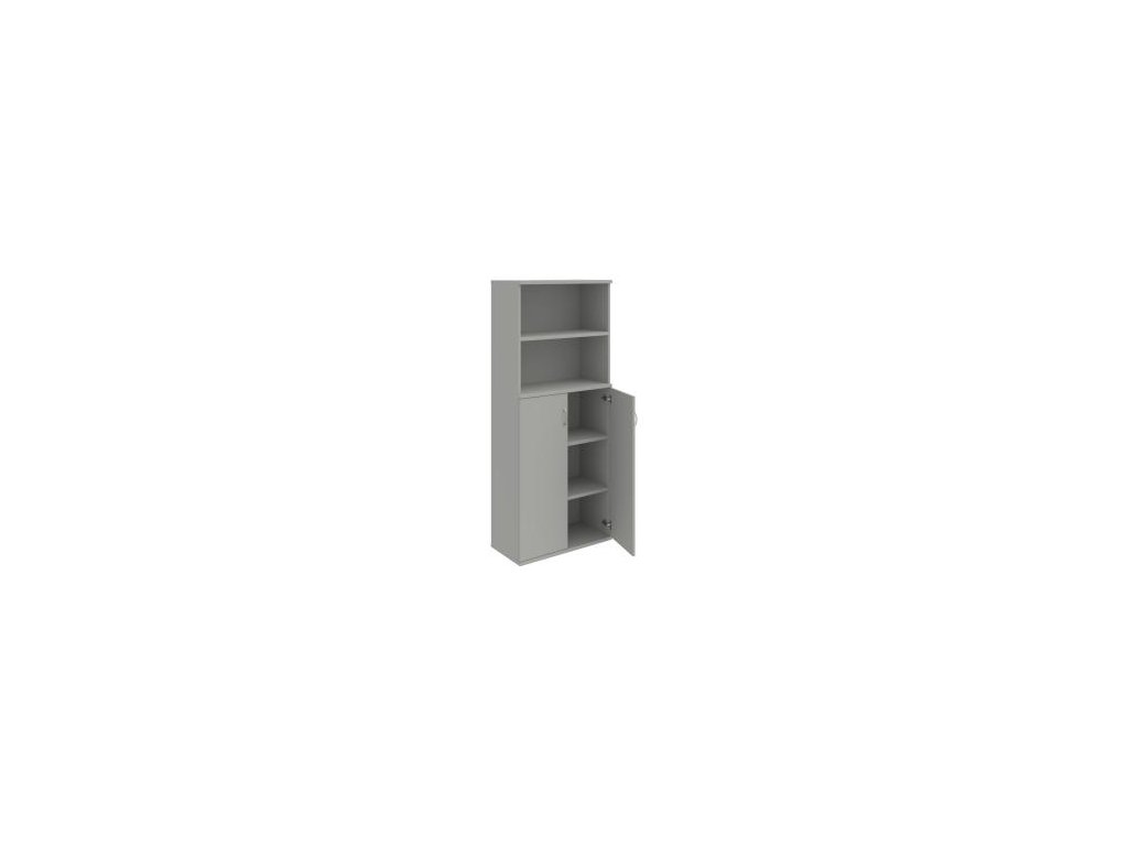 Kombinovaná skriňa - dvere/nika. Kancelárske skrine STRONG majú robustnú konštrukciu a vyššiu nosnosť políc ako bežné kancelárske skrine.V ponuke sú skriňové moduly s výškou 185 cm, 111 cm alebo 74 cm a šírky 80 cm alebo 40 cm.Hĺbka všetkých modelov skriňového radu STRONG je 40 cm.Chrbát, vyrobený z 8 mm hrubých dosák, je obojstranne pohľadový, takže skrine môžete použiť ako priestorový deliaci prvok. Hrúbka samotných políc je 25 mm, čo znamená nosnosť 80 kg na 1 policu.Korpusy, dvierka a police skríň sú olepené odolnou 2mm ABS hranou, ktorá garantuje dostatočnú ochranu proti poškodeniu.