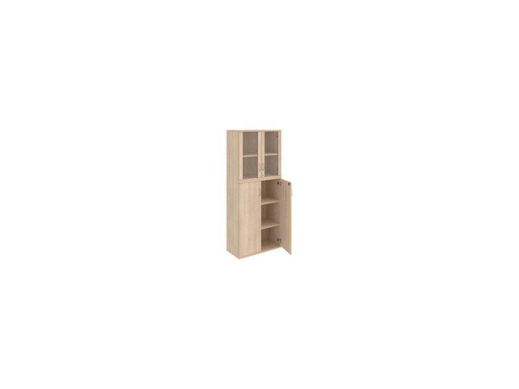Kombinovaná skriňa - dvere/nika. Kancelárske skrine STRONG majú robustnú konštrukciu a vyššiu nosnosť políc ako bežné kancelárske skrine.V ponuke sú skriňové moduly s výškou 185 cm, 111 cm alebo 74 cm a šírky 80 cm alebo 40 cm. Hĺbka všetkých modelov skriňového radu STRONG je 40 cm.Chrbát, vyrobený z 8 mm hrubých dosák, je obojstranne pohľadový, takže skrine môžete použiť ako priestorový deliaci prvok. Hrúbka samotných políc je 25 mm, čo znamená nosnosť 80 kg na 1 policu.Korpusy, dvierka a police skríň sú olepené odolnou 2mm ABS hranou, ktorá garantuje dostatočnú ochranu proti poškodeniu.
