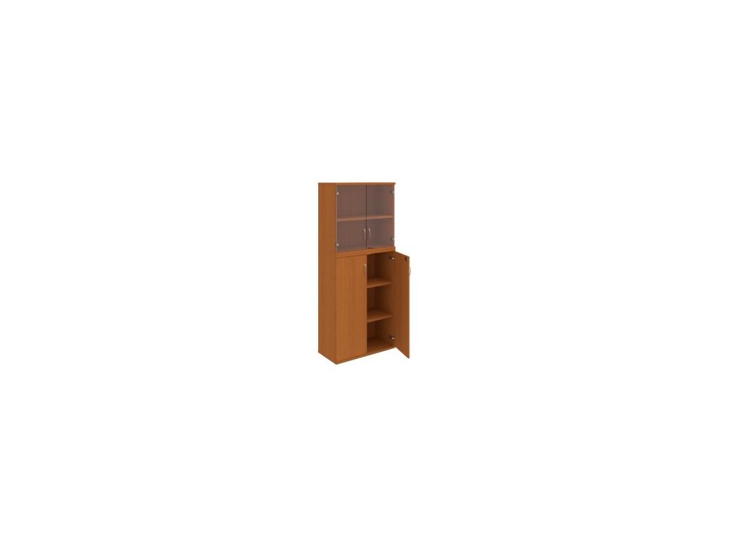 Kombinovaná skriňa - dvere/nika. Kancelárske skrine STRONG majú robustnú konštrukciu a vyššiu nosnosť políc ako bežné kancelárske skrine.V ponuke sú skriňové moduly s výškou 185 cm, 111 cm alebo 74 cm a šírky 80 cm alebo 40 cm. Hĺbka všetkých modelov skriňového radu STRONG je 40 cm.Chrbát, vyrobený z 8 mm hrubých dosák, je obojstranne pohľadový, takže skrine môžete použiť ako priestorový deliaci prvok. Hrúbka samotných políc je 25 mm, čo znamená nosnosť 80 kg na 1 policu.Korpusy, dvierka a police skríň sú olepené odolnou 2mm ABS hranou, ktorá garantuje dostatočnú ochranu proti poškodeniu.