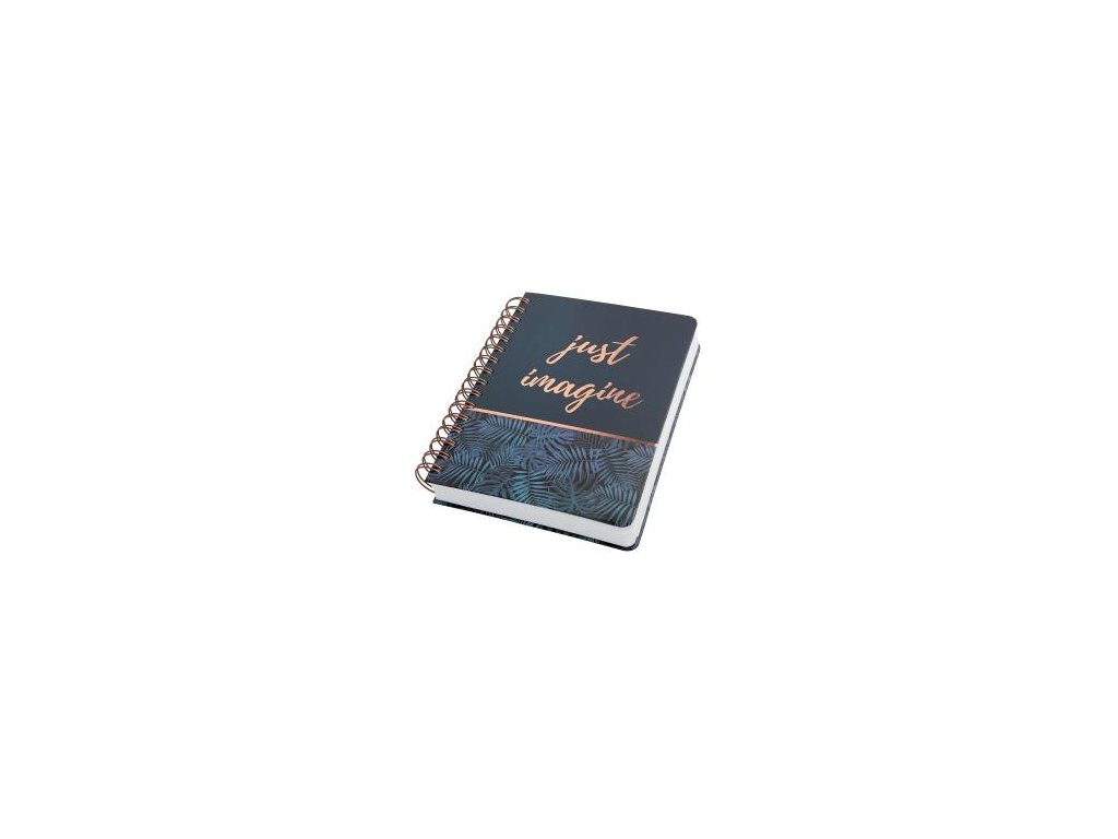 Moderný poznámkový blok s drôtenou špirálou na dlhšej strane a pevnými doskami. 240 strán formátu cca A5 (13,5 x 20,3 cm), bodkovaný podklad, papier gramáže 120 g s mikroperforáciou a certifikátom FSC aj pre písanie atramentom, zaoblené rohy.Dodatočné parametre