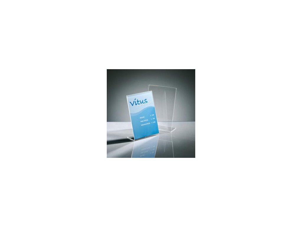 Univerzálny stojan odolný voči UV žiareniu v naklonenej verzii. Vhodný na výstavy, veľtrhy, ponukové listy, jedálne lístky a propagačné materiály. Vyrobený z kvalitného číreho akrylu, stabilný a pevný. Formát A4.Dodatočné parametre