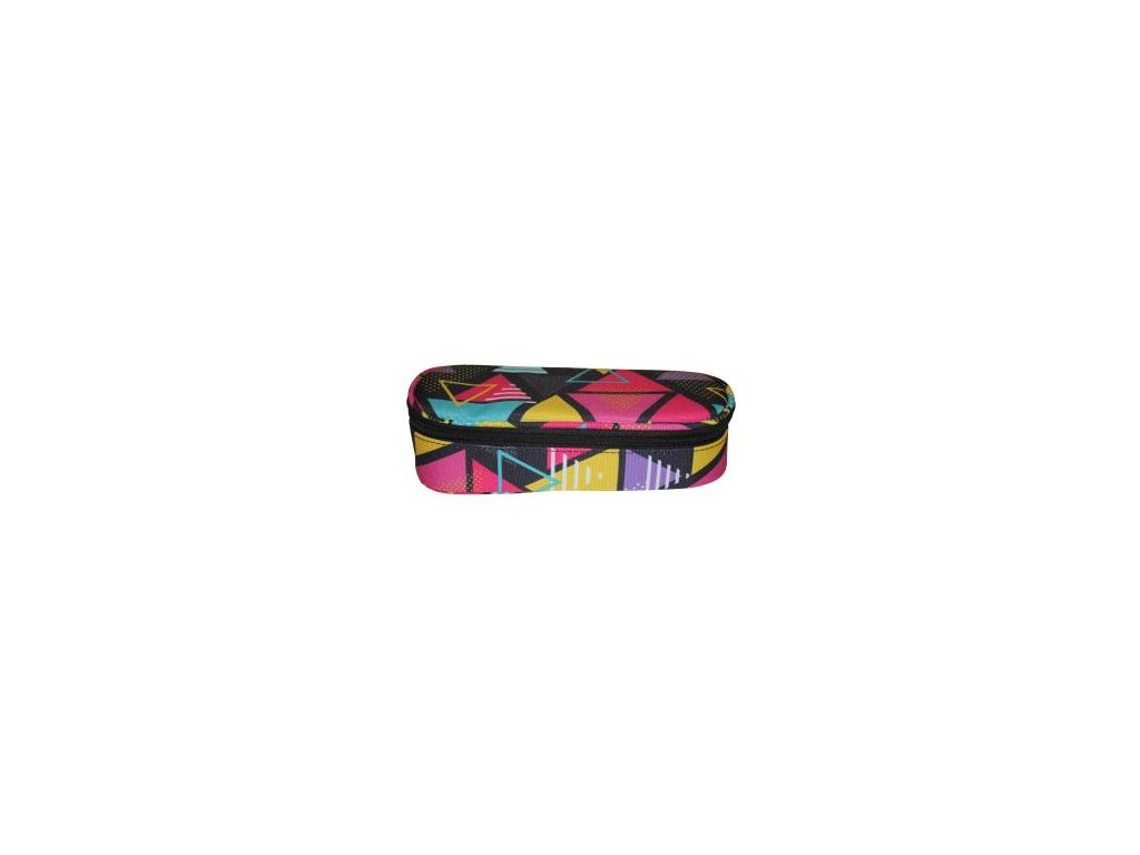 Oválny peračník na zips, 1 vnútorná chlopňa s pútkami na pero, bez náplne, materiál polyester. Rozmery: Š x V x H: 21 x 5,5 x 10,5 cm. Motív Trojuholník.Dodatočné parametre