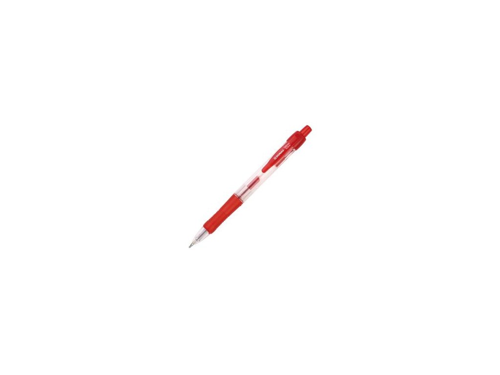Klikací roller s plastovým klipom a gumeným úchytom vo farbe tuhy. Plnený netoxickým pigmentovým vode odolným atramentom. Telo z plastu, guľôčka 0,5 mm, šírka stopy 0,25 mm, dĺžka stopy 400 m. Väčšie balenie 12 ks. Náhradná náplň obj. kód DO734604.Farba: červená