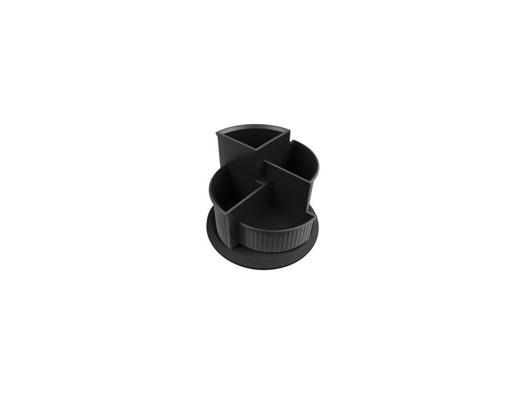 Rotačný stojan so 4 sekciami na písacie potreby a ďalšie drobnosti v dizajne rady Linear. Priemer 14 cm, výška 10 cm.Farba: čierna