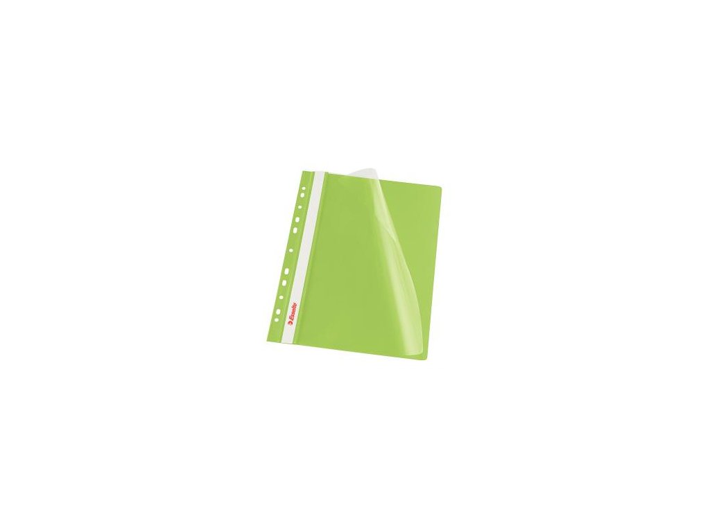 Obal s eurodierovaním z kvalitného PVC na uloženie dierovaných dokumentov do formátu A4. Predná strana priehľadná, pozdĺž chrbta biely obojstranný papierový zasúvací štítok. Rozmery 310 × 235 mm. Farba zelená.Dodatočné parametre