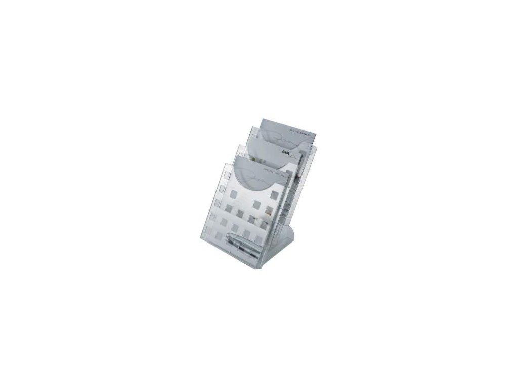 Sada odkladačov na prospekty pozostáva z troch univerzálnych odkladačov formátu A4 a stojana.Farba: priehľadná číra