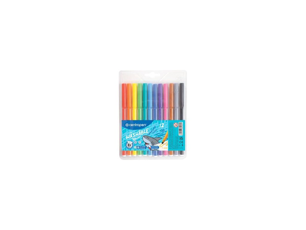 Popisovač vyrobený z PP s ventilačným bezpečnostným uzáverom a vláknovým hrotom odolným voči zatlačeniu. Šírka stopy 1,8 mm. Dodávaný v sade 12 farieb.Farba: sada 12 ks