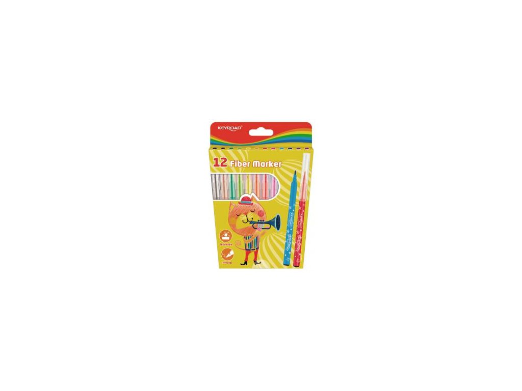 Sada popisovačov KEYROAD Fiber Marker, 12 ks, mix farieb