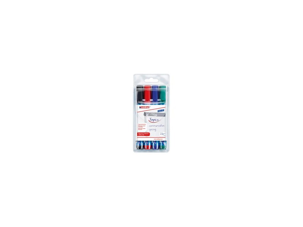 Popisovač s atramentom na vodnej báze a vlastnosťou Cap off, zabraňujúcou vysychaniu atramentu pri otvorenom hrote aj niekoľko dní. Na popisovanie flipchartových blokov a iných archov papiera. Opätovne naplniteľné atramentom FTK 25 (obj. kód ED625101-4), ktorý neprepíja na druhú stranu papiera. Hrot okrúhly, Šírka stopy 1,5 - 3 mm. Sada 4 farieb.Farba: sada 4 farieb