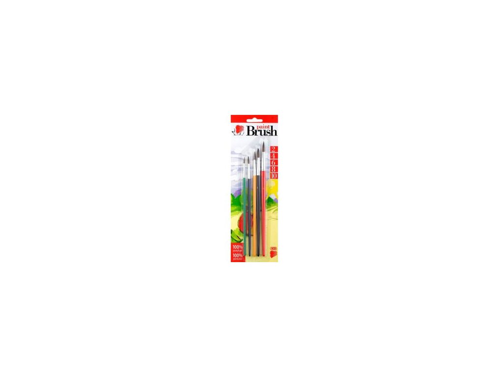 5 kusová sada guľatých školských štetcov s farebnou rúčkou. Štetina 100% poník. Ideálne na maľovanie vodovými farbami. Šírka štetiny 2-4-6-8-10 mm.Dodatočné parametre