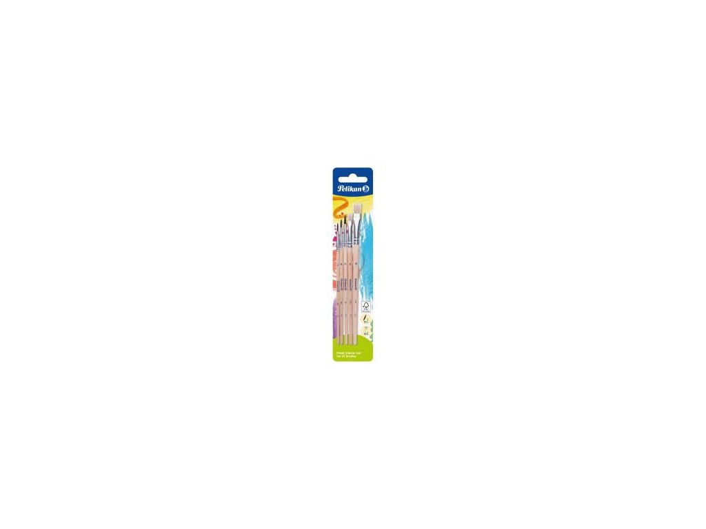 Sada štetcov Starter-Set Pelikan 5ks, v zložení: 3 ks vlasové (čísla 2, 4, 6) + 2 ks štetinové ( čísla 6, 10), rukoväť z FSC dreva. Balenie blister.Dodatočné parametre