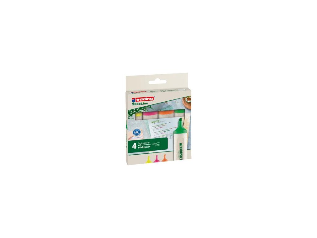 Minimálne 90% tela a uzáveru zvýrazňovača je vyrobené z obnoviteľných zdrojov. Zvýrazňovač so zrezaným hrotom so šírkou stopy 2 - 5 mm. Pre zvýraznenie textových pasáží, poznámok a pod. Atrament na vodnej báze s intenzívnymi farbami. Dopĺňateľný atramentom HTK 25.Sada 4 farieb