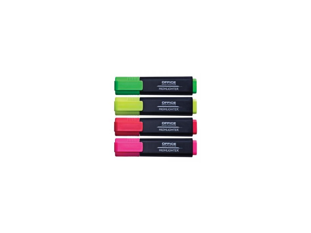 Zvýrazňovače na zvýraznenie textu na liste papiera, v knihe, na fotokópiách a atramentových a laserových výtlačkoch. Klip, zrezaný hrot, šírka stopy 1 - 5 mm, dĺžka 250 m. Sada 4 farieb.Dodatočné parametre