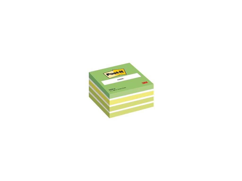 Post-it® lístky v kocke. Farba zelená v rôznych odtieňoch. 450 lístkov v jednej kocke. Rozmery 76 × 76 mm.- Post-it® kocky bločkov sa dodávajú v najrôznejších farbách a sú ideálne pre používateľov, ktorí nešetria slovami.