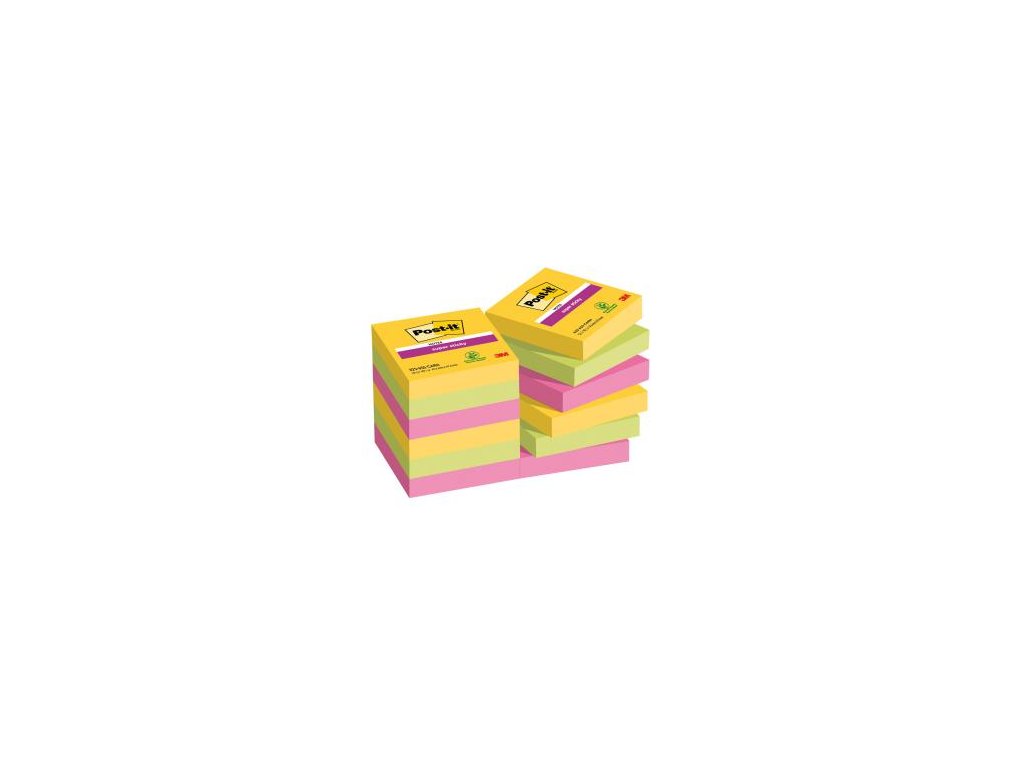 Samolepiaci bloček Post-it Super Sticky CARNIVAL, veľkosť 47,6 x 47,6 mm, 12 bločkov po 90 lístkov