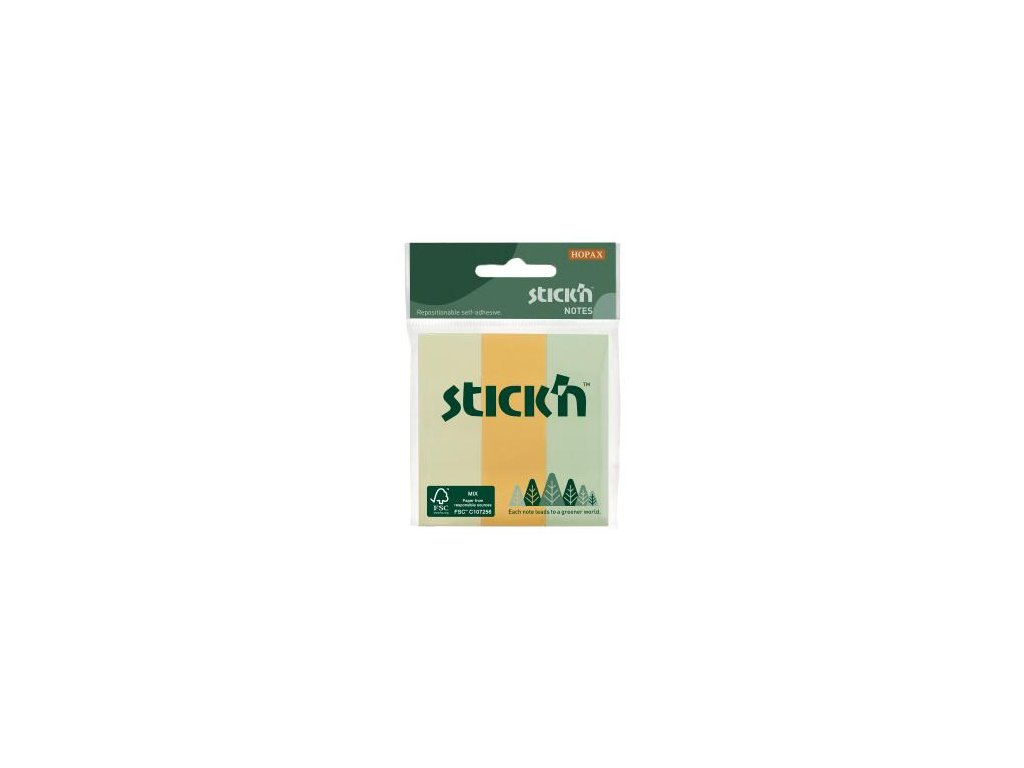 Samolepiaci bloček Stick’n Hopax, 76x25 mm, mix pastelových farieb, 3x50 lístkov