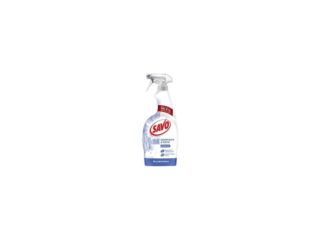 Viacúčelový sprej Savo dezinfekcia bez chlóru na vodný kameň je vynikajúcim pomocníkom pre priestor v kúpeľni či kuchyni. Tekutý čistiaci a dezinfekčný prípravok v spreji Savo zbaví čistené povrchy nielen nečistôt a vodného kameňa, ale hlavne alergénov a zlikviduje až 99,9 % baktérií. Navyše zanecháva príjemnú vôňu bez chemického zápachu. Má univerzálne bezoplachové použitie v celej domácnosti - je vhodný na odstránenie vodného kameňa a každodenného znečistenia v kúpeľni, na čistenie a dezinfekciu všetkých umývateľných povrchov v kúpeľni a tiež je ideálny pre domácnosti s domácimi maznáčikmi. Objem 700 ml.Pre každodennú dezinfekciu nastriekajte prípravok na čistený povrch a nechajte pôsobiť 5 minút, potom opláchnite a utrite vlhkou handričkou.