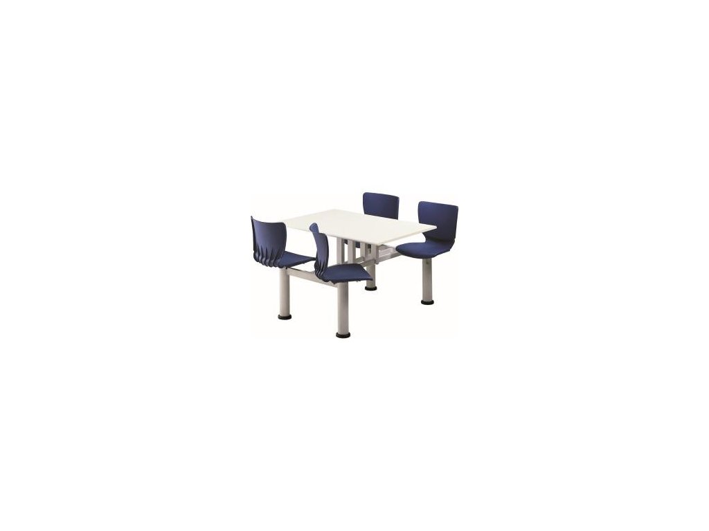 Jedálenský set do školskej alebo podnikovej jedálne, ktorý pozostáva z plastových stoličiek uchytených k rámu a dosky stola.