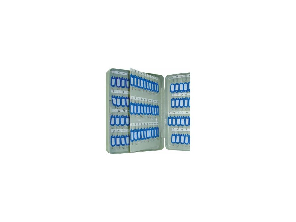 Uzamykateľná skrinka z pevnej ocele na bezpečné uloženie kľúčov. Cylindrický zámok dodávaný s 2 kľúčmi. Zahŕňa rôzne sady vešiakov na kľúče, štítkov a indexového listu. Obsahuje tiež súpravu na upevnenie na stenu. Farba sivá.Kapacita: 140 kľúčov