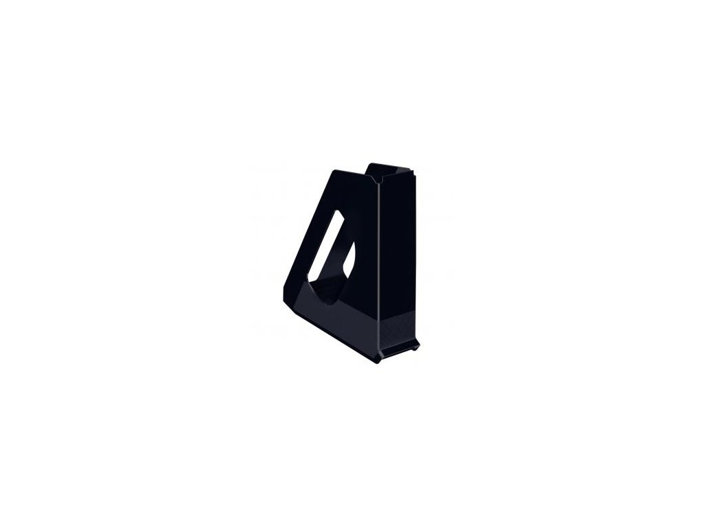Moderný stojan na časopisy pre uloženie dokumentov formátu A4 na pracovnom stole s unikátnym embosovaným povrchom vo sviežich farbách radu Esselte VIVIDA. Materiál polystyrén. Šírka chrbta 7 cm. Farba čierna.`Je možné kombinovať s ostatnými výrobkami z radu Esselte Europost a VIVIDA pre jednotný vzhľad kancelárie