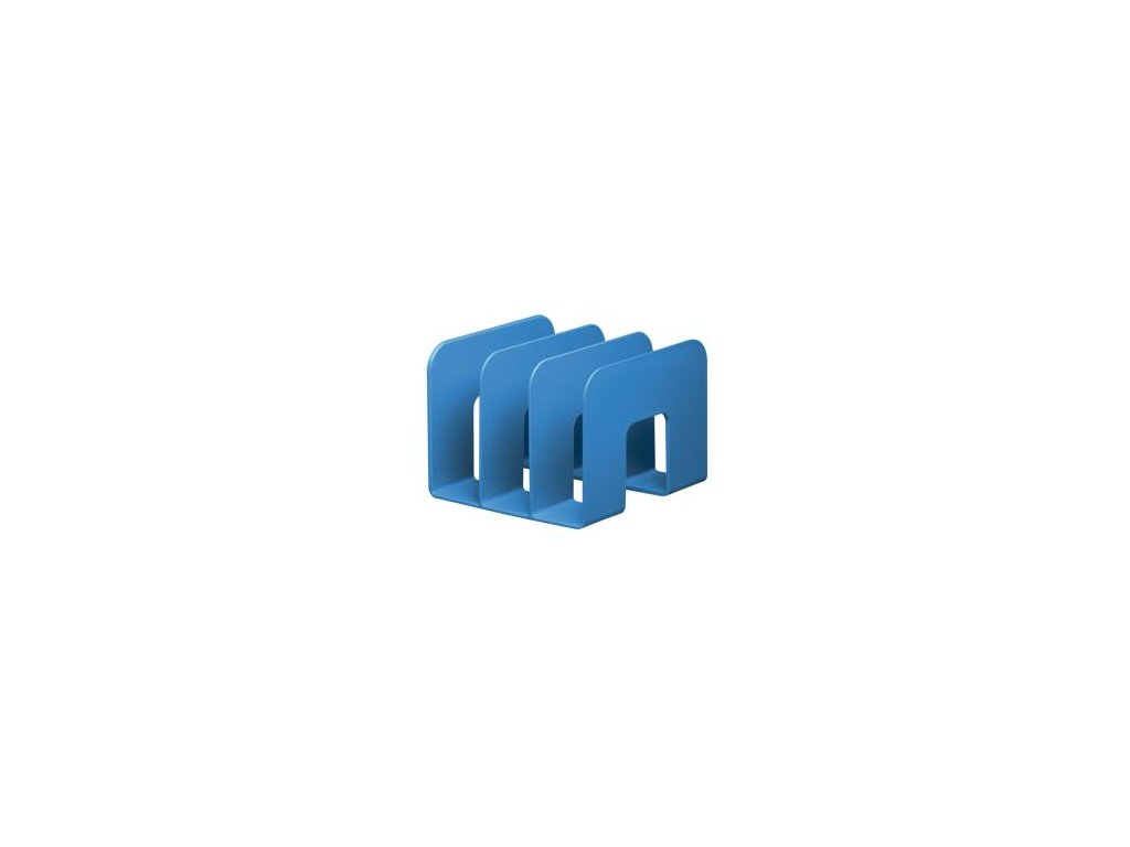 Trojpriehradkový stojan na katalógy pre flexibilné použitie. Vyrobený z recyklovaných plastov v kvalite Blue Angel. Priehradky široké 65 mm. Jednoduché zasúvanie a vyberanie. Vhodný pre časopisy, brožúry, katalógy atď. Rozmery: 215 x 165 x 210 mm (Š x V x H). Farba modrá.Dodatočné parametre