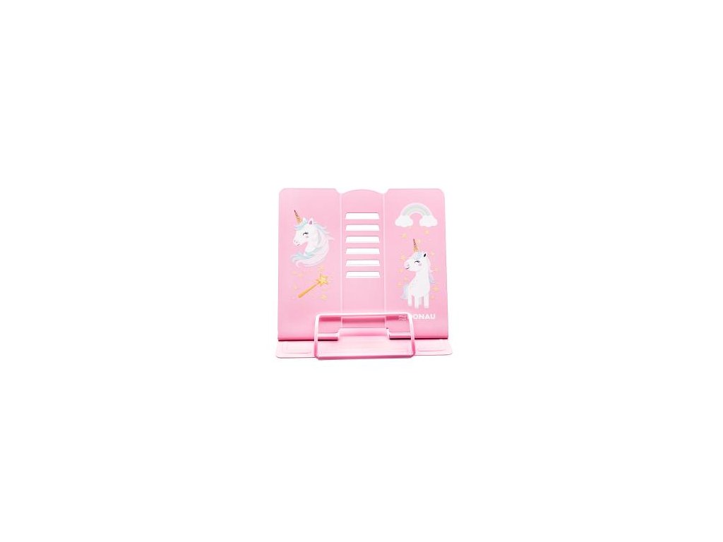 Kvalitný stojan na knihy, učebnice alebo tablet s atraktívnou potlačou Jednorožec. Vyrobený z odolného lakovaného kovu, ideálny aj pre ťažšie knihy. S protišmykovými úchytmi, nastaviteľná výška a uhol sklonu v 5 stupňoch. Keď sa nepoužíva, zloží sa úplne naplocho. Súčasťou je aj praktická zarážka na otvorenú stránku. Využitie nájde doma, v škole, v kuchyni, v kancelárii či ako stojan na noty. Rozmery: základňa: 21 × 16,5 cm, výška: 15,7 cm.Výška: 15,7 cm