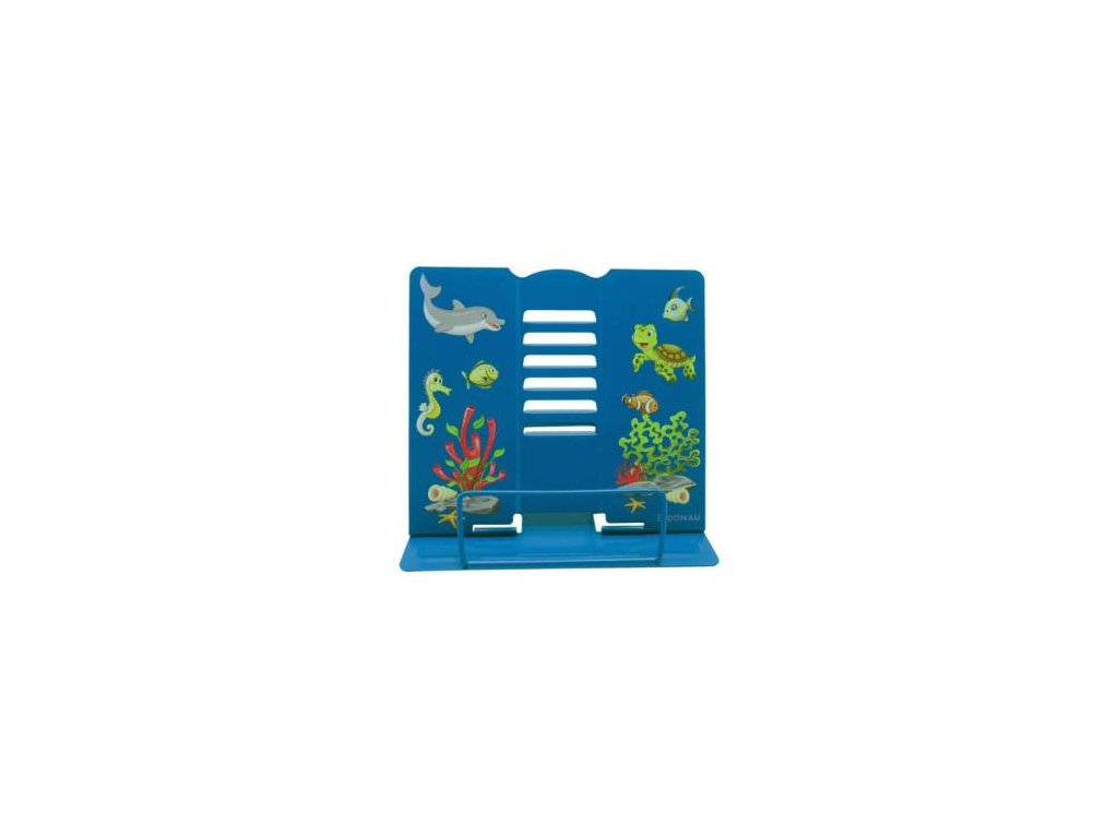 Kvalitný stojan na čítanie z lakovaného kovu, s potlačou zvieratiek, vhodný aj pre ťažké knihy a tablety, s protišmykovými gombíkmi, nastaviteľná výška/uhol sklonu v 5 stupňoch, pri nepoužívaní sa zloží na plocho pre úsporu miesta pri preprave a úložný priestor, s uzamykacou konzolou na otvorenú stranu, všestranný v škole, kancelárii, kuchyni alebo ako stojan na noty, rozmer základne 21 x 16,5cm, výška 15,7 cm, motív Zvieratká, modrý.Dodatočné parametre