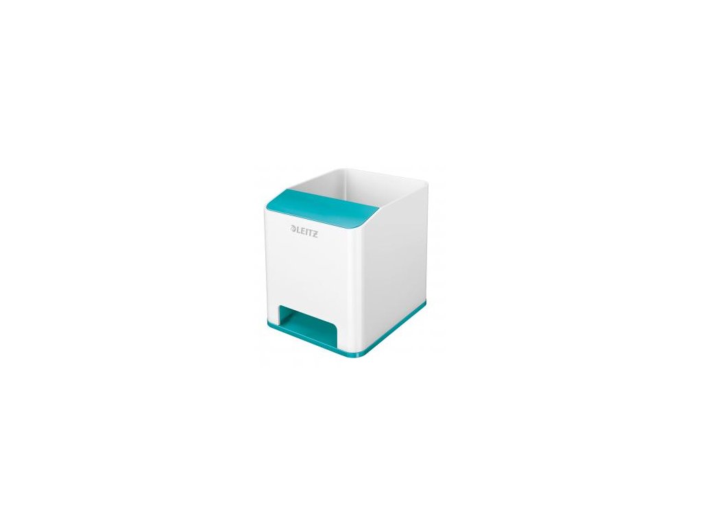 Neprehliadnuteľný štýlový stojan na perá v prémiovej kvalite Leitz v štýlových žiarivých farbách WOW. Extra odkladač pre smartphone do veľkosti iPhone 6 plus so špeciálnou funkciou pre zosilovanie zvuku, veľa miesta pre písacie potreby, pravítko, stylus a iné drobnosti. Moderný dizajn, ktorý vyzerá rovnako dobre v kancelárii, ako aj doma na pracovnom stole, dobre dopĺňa ostatné produkty radu WOW. Farba ľadová modrá.Dodatočné parametre