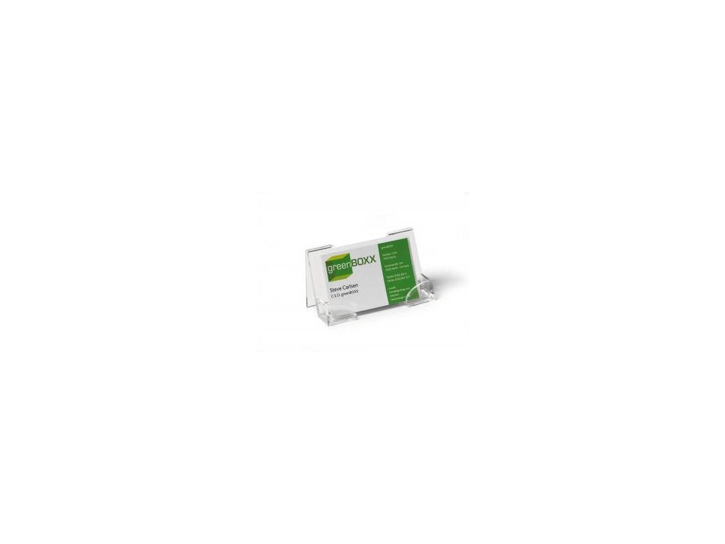 Jednoduchý a zároveň štýlový stolový stojan na vizitky. Dodávaný so samolepiacimi protišmykovými podložkami. Kapacita 50 vizitiek maximálnej šírky 100 mm. Farba číra.Kapacita: 50 vizitiek