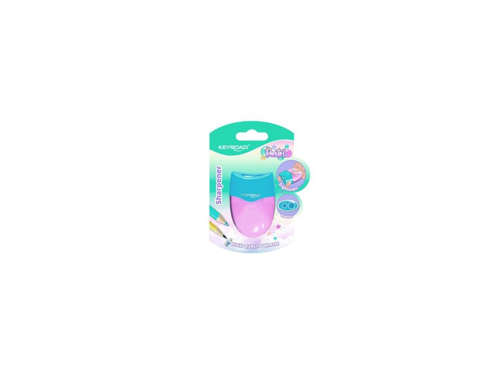 Plastové strúhadlo KEYROAD s nádobou, dvojité. Balenie: blister. Farba: mix pastelových farieb.Dodatočné parametre