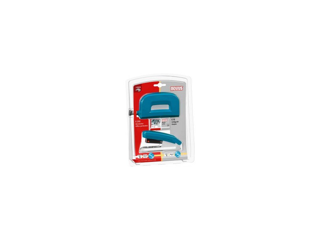 Súprava kancelárskych produktov obsahuje zošívačku Novus E 15, dierovačku Novus E 210 a spinky No.10 SUPER. Farba petrolejová.Dodatočné parametre