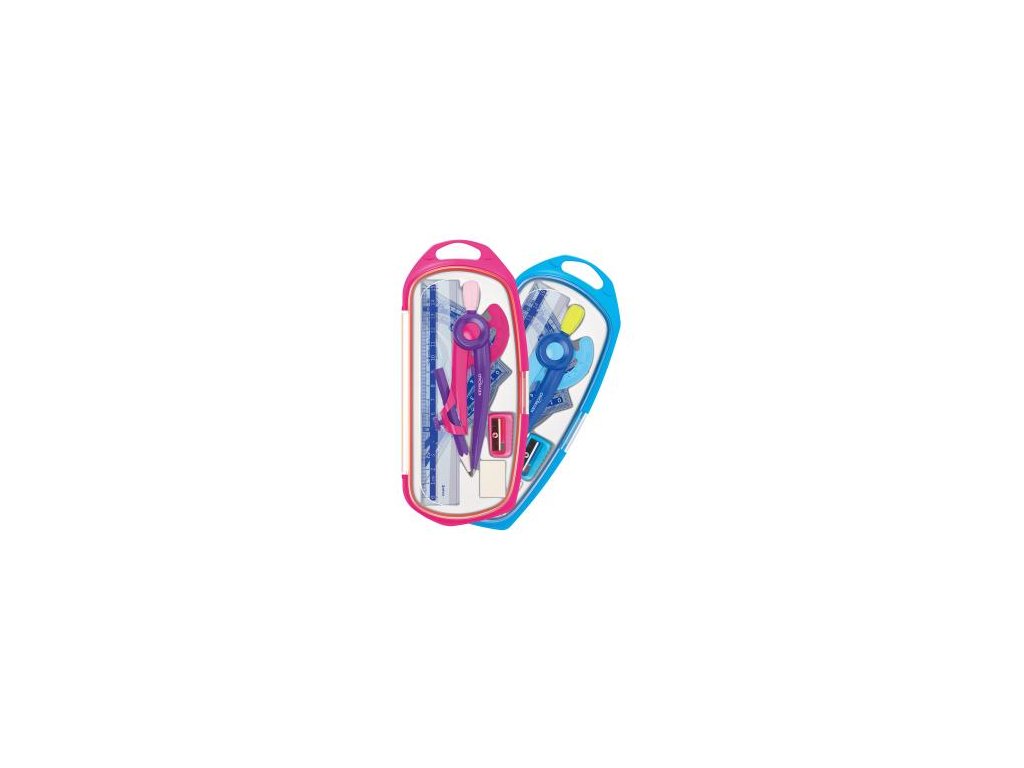 Súprava školských pomôcok na geometriu užitočná pre každého študenta. Mierka podľa noriem. Veľká sada: kružidlo, pravítko, uhlomer, trojuholník, strúhadlo, guma. Farba: mix farieb.Dodatočné parametre