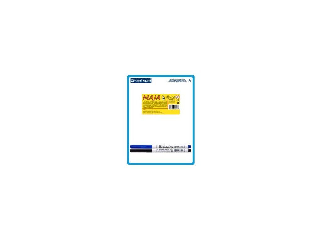 Obojstranne stierateľná tabuľka CENTROPEN 18 x 24 cm s vytlačenými linkami. Vhodná na nácvik písania a kreslenia. Obsahuje 2 značkovače centropen 2507, čierny a modrý.Kartónové balenie: 20 ks
