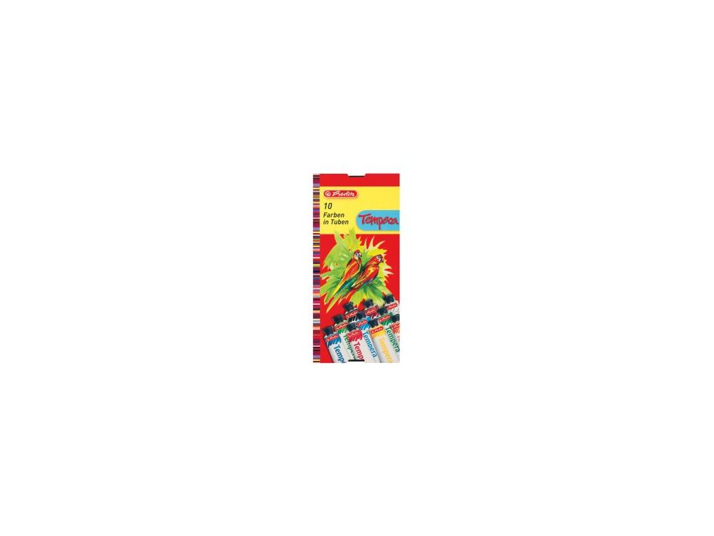 Temperové farby, 10 kusov v 16 ml tubách. Farby:biela,žltá,oranžová,červená,bledomodrá,tmavomodrá,bledozelená,tmavozelená,hnedá,čierna, vo vode rozpustné, zmiešateľné. Balenie v krabičke.Dodatočné parametre
