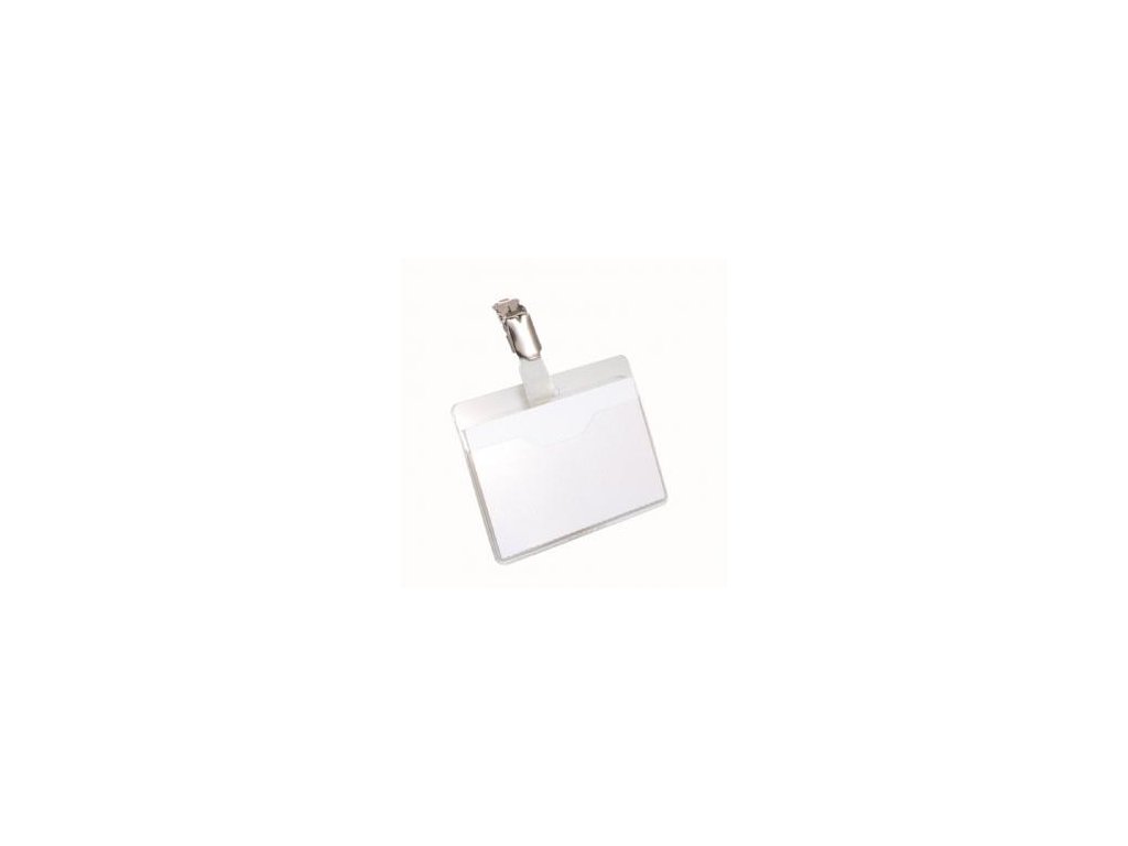 Priehľadná visačka s európskym štipcom, umiestneným na dlhšej strane visačky. Dodávané s papierovými kartičkami rozmerov 90 × 60 mm. Model, pri ktorom možno menovku vyberať bez potreby odnímania štipca s remienkom. Farba transparentná. Balenie 5 ks.Dodatočné parametre