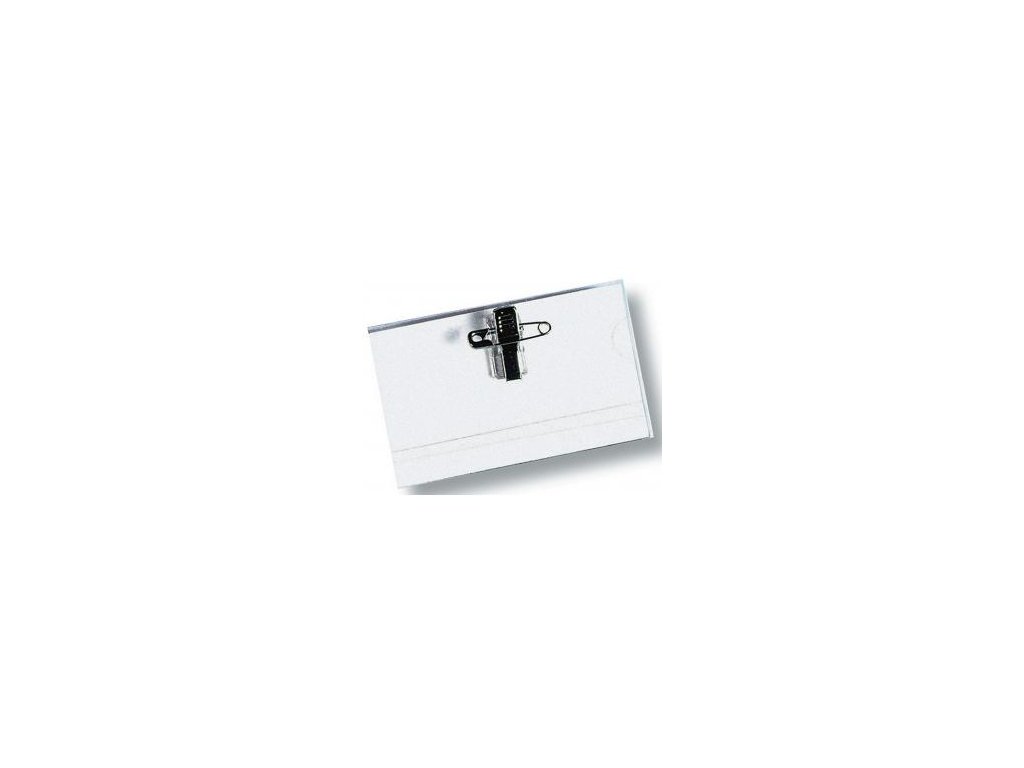 Visačka z pevného priehľadného PVC. Uchytenie na odev pomocou štipca alebo zatváracieho špendlíka. Balenie 50 ks.Rozmery: 90 x 57 mm