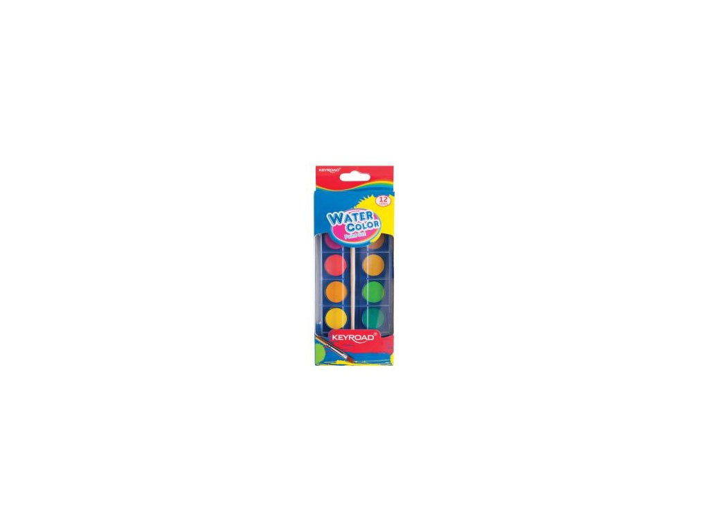 Vodové farby akvarelové so štetcom KEYROAD, 12 farieb