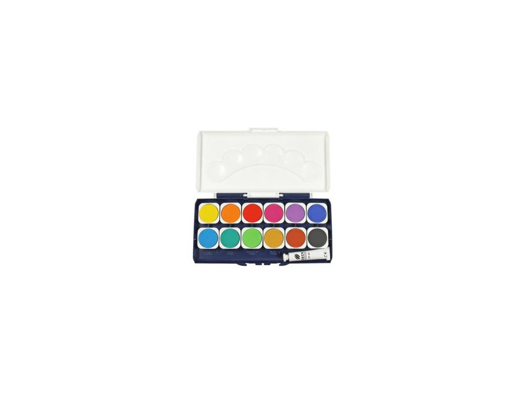 Vodové farby Donau, 12 farieb, vrátane nepriehľadnej bielej. Vyberateľné misky, paleta na miešanie farieb.Dodatočné parametre