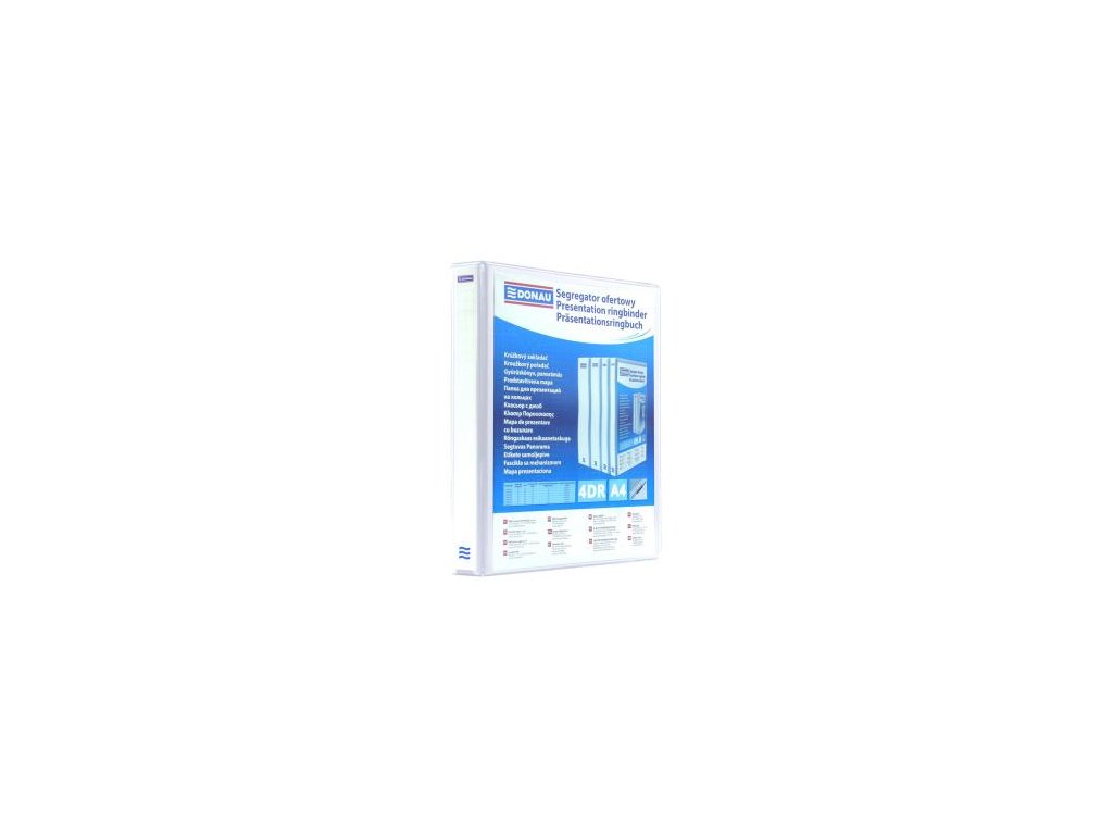 Zakladač 4-krúžkový prezentačný DONAU kartón/PP, A4/4RD/65, biely