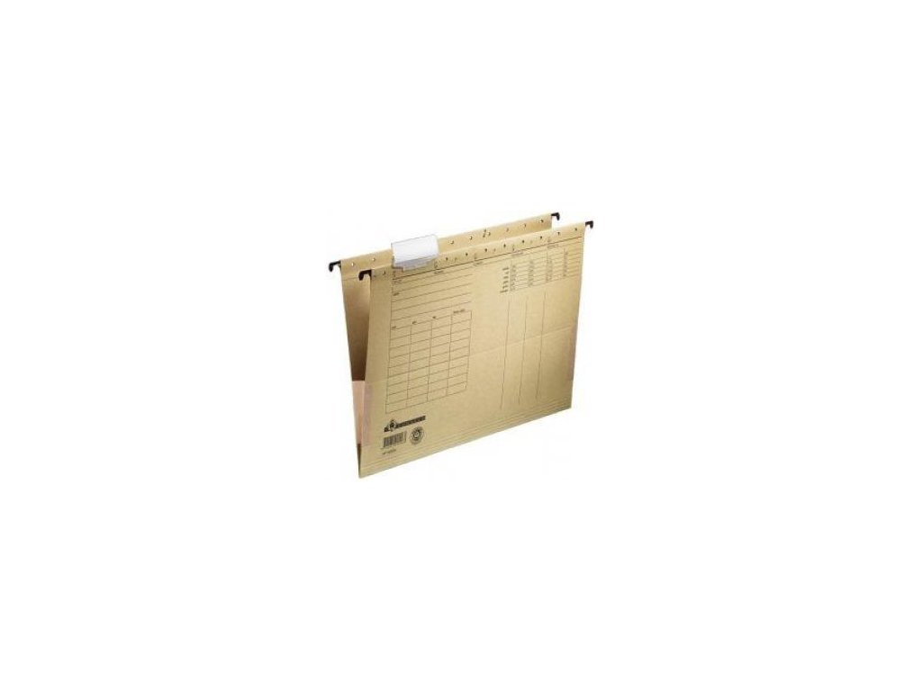 Závesné obaly z recyklovaného papiera gramáže 230 g na dokumenty formátu A4 s bočnicami. Súčasťou obalov je násuvný index z priehľadného plastu s výmenným papierovým štítkom. Farba prírodná hnedá. Väčšie balenie 25 ks.Dodatočné parametre