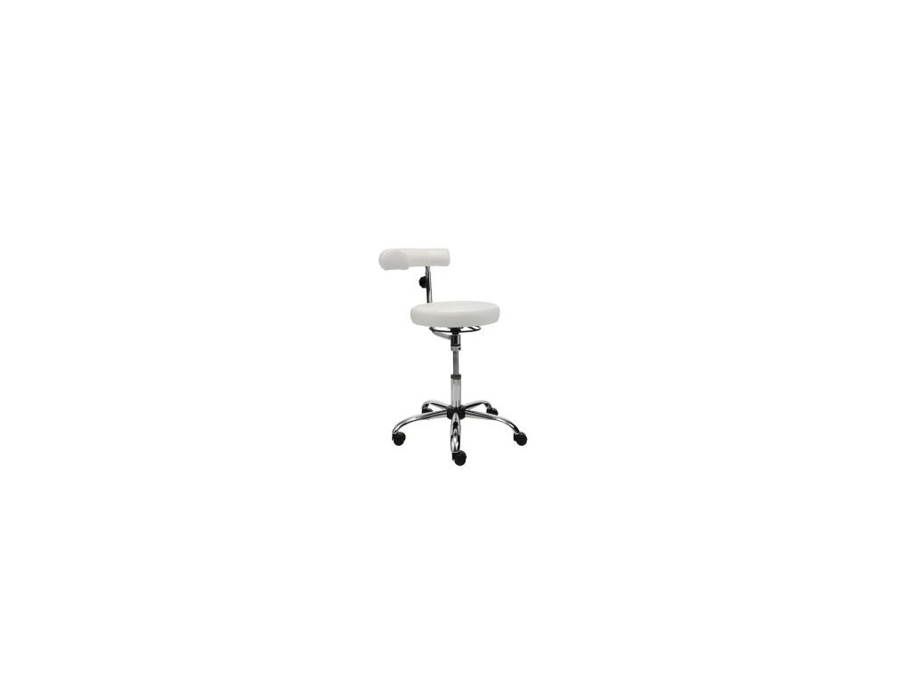 Pracovná čalúnená stolička. Nastavenie opierky vo vodorovnom a zvislom smere, pevný uhol medzi sedadlom a opierkou, plynový piest. Nosnosť 110 kg. Dodávaná bez podrúčok. Farba biela.