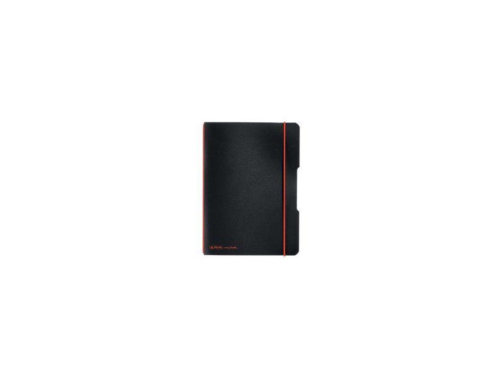 Zošit my.book flex - A5/40 listov, štvorčekový, PP, 80g/m2, zaoblené rohy, priehľadný s červenou gumičkou na zatváranie. Farba čierna.Dodatočné parametre